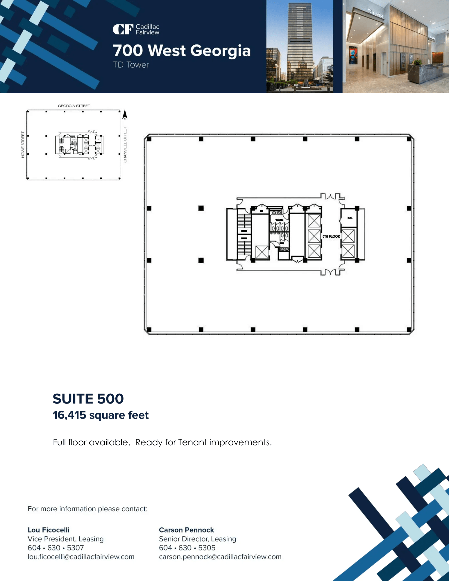 | TD Tower | 16415 | 16,415 | Immediately | Full floor, efficient floorplate |