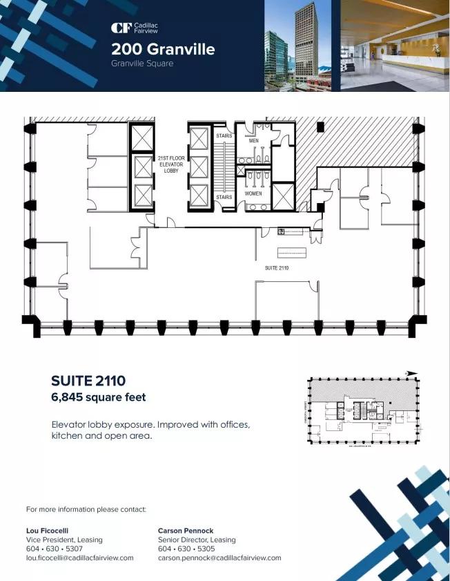 | Granville Square | 2110 | 6,845 | Immediately | Elevator lobby exposure | |||||